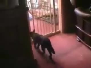 Cat fails to jump over gate